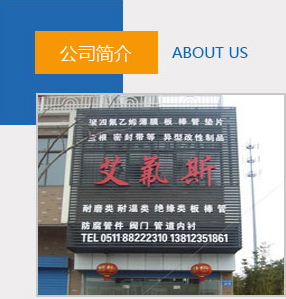 揚中市艾氟斯管閥件有限公司是專業的聚四氟乙烯產品生產廠家,主要產品:聚四氟乙烯板、聚四氟乙烯薄膜。公司生產的聚四氟乙烯管材,聚四氟乙烯棒材,聚四氟乙烯板材,聚四氟乙烯車削板、膜、帶,聚四氟乙烯墊片、墊圈,聚四氟乙烯彈性帶,聚四氟乙烯擠出管,聚四氟乙烯膜片,聚四氟乙烯異型件,聚全氟乙丙烯管,聚四氟乙烯盤根等聚四氟乙烯制品,廣泛用于國防,航空,化工冶金,機械制造等行業。